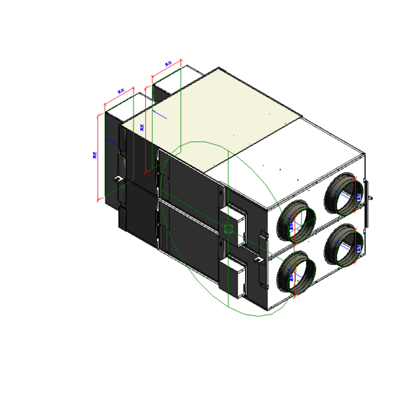 3.電壓:220V 60Hz,風管:∅250mm (10吋),最大風量:1500(m³/h)、最小噪音:40(dBA),溫度交換效率:76~87%。